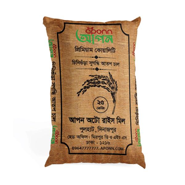 প্রাচীন গ্রামবাংলার ঐতিহ্যবাহী, প্রাকৃতিক গুণে অনন্য আতপ চাল। সরাসরি সিদ্ধ না করে, রোদে শুকিয়ে ধান মাড়াই করে উৎপাদিত উন্নত মানের এই আতপ চাল প্রতিবারই আপনাকে ফিরিয়ে নিয়ে যায় গ্রামীণ ঐতিহ্যের স্বাদে। অনুকূল পরিবেশে এবং অত্যাধুনিক প্রযুক্তির সহায়তায় উৎপাদিত এই সুগন্ধি চিনিগুড়া চাল বেলে ও দোঁআশ মাটিতে চাষ হওয়ায় এর ঘ্রাণ ও স্বাদ একেবারেই প্রাকৃতিক। চালের স্বচ্ছ দানাগুলো আহারের আগেই এনে দেয় এক মনোমুগ্ধকর প্রশান্তি। নিজস্ব কৃষকের উৎপাদিত ধান থেকে প্রাকৃতিক উপায়ে প্রক্রিয়াজাত করে কঠোর মান নিয়ন্ত্রণের মাধ্যমে ভোক্তার কাছে পৌঁছে দেওয়া হয় আমাদের আপন চাল।